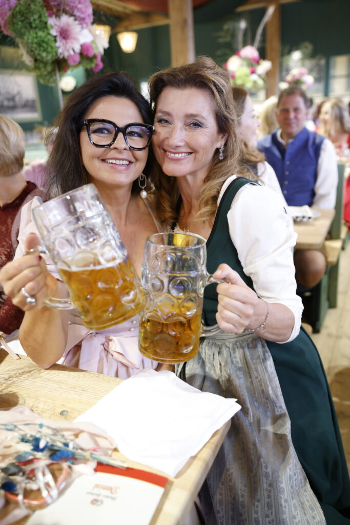 Die Frauen übernahmen bei diesem Event die Führung: Alexandra Polzin dirigierte die Band – eine Premiere: „Es hat Spaß gemacht, war aber anstrengender als gedacht“, meinte sie lachend. „Was für eine Ehre für mich als gebürtige Berlinerin. Durch meinen Mann – ein waschechter Bayer – bin ich mittlerweile in alle Geheimnisse der Wiesn eingeweiht.“ Sie ist Stammgast bei der „Belladonna Wiesn“: „Für mich ein angenehmer Pflichttermin, da ich mit Michaela Aschberger eng befreundet bin. Und für meinen Mann mittlerweile auch“, meinte sie lachend. „Er freut sich jedes Jahr aufs Neue darauf, hier inmitten so vieler Frauen zu feiern.“